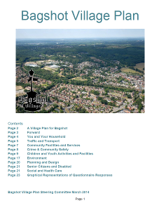 good idea to produce a long term village plan. In November 2008 a Bagshot Village Plan Steering Group formed and letters sent out to local residents for further support. This resulted in a very solid committee of 13 people including a fair smattering of local councillors, business people, community leaders, as well as quite a few ordinary folks. The committee surveyed local opinion and had various consultations which ended with the production of a report : the Bagshot Village Plan. You can download it here (pdf). |